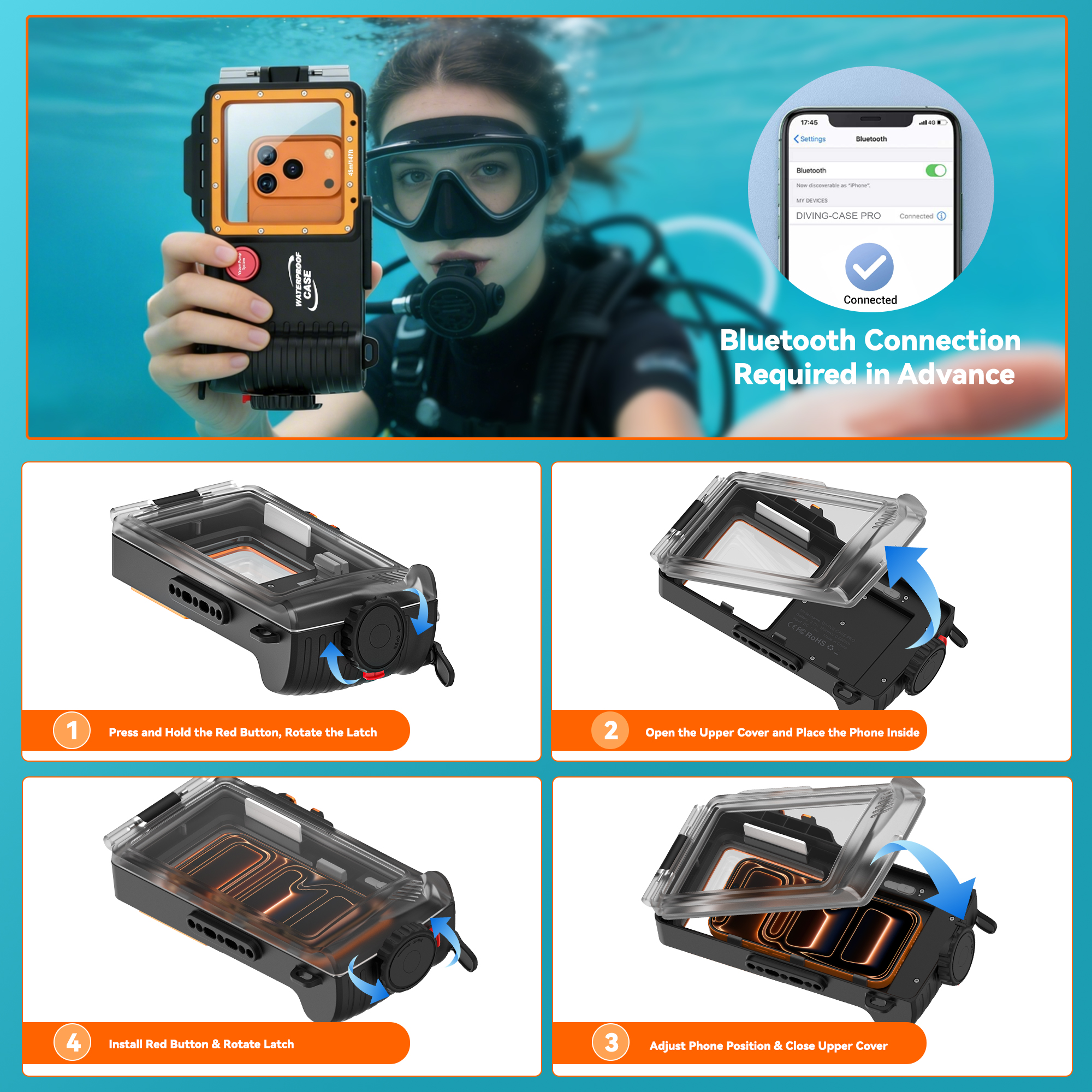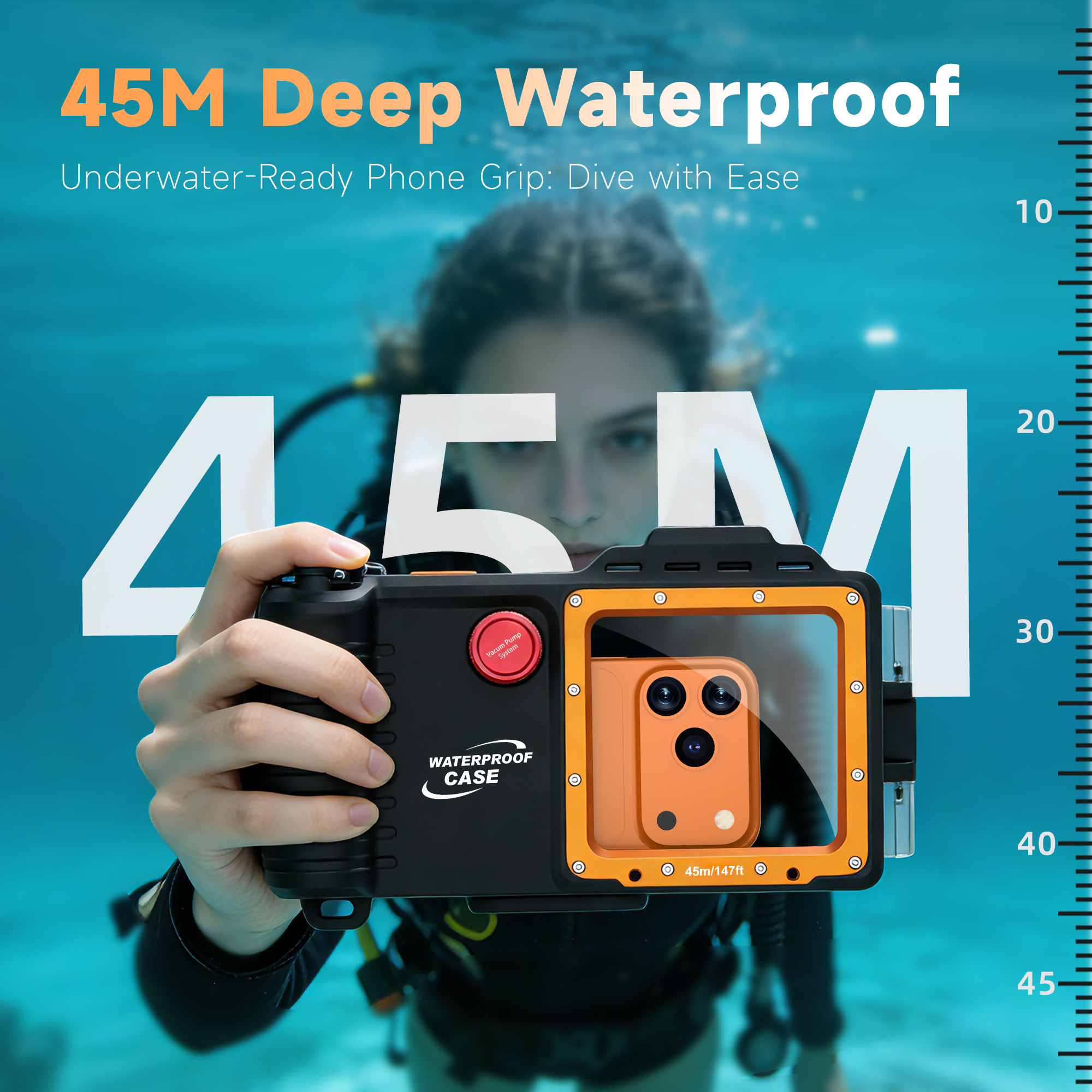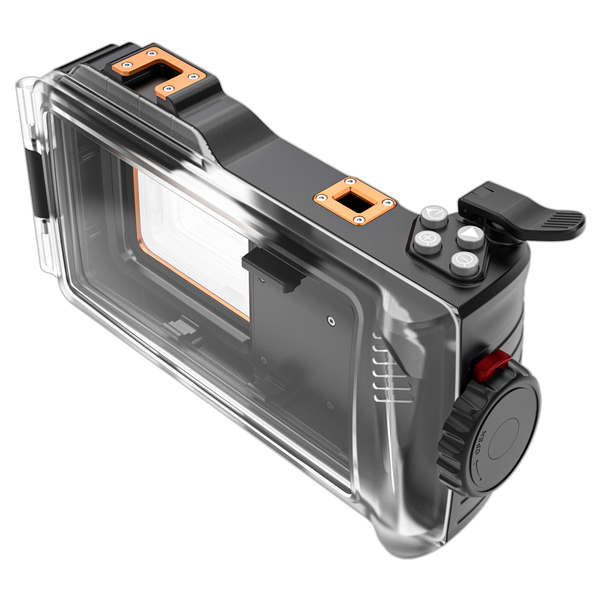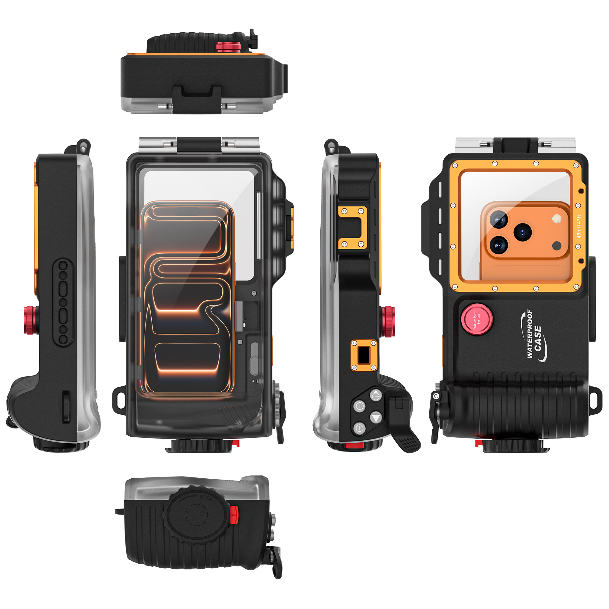 Unlike casual waterproof pouches, our housing utilizes a precision-engineered O-ring seal with a secure safety lock to prevent accidental opening under high pressure.