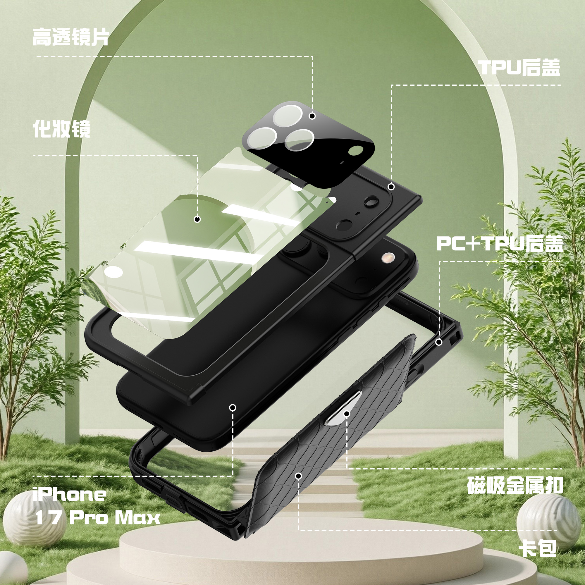 2025 New Waterproof Protect Case with Mirror Card Wallet function for iPhone 17Pro max 17Pro 17Air 17