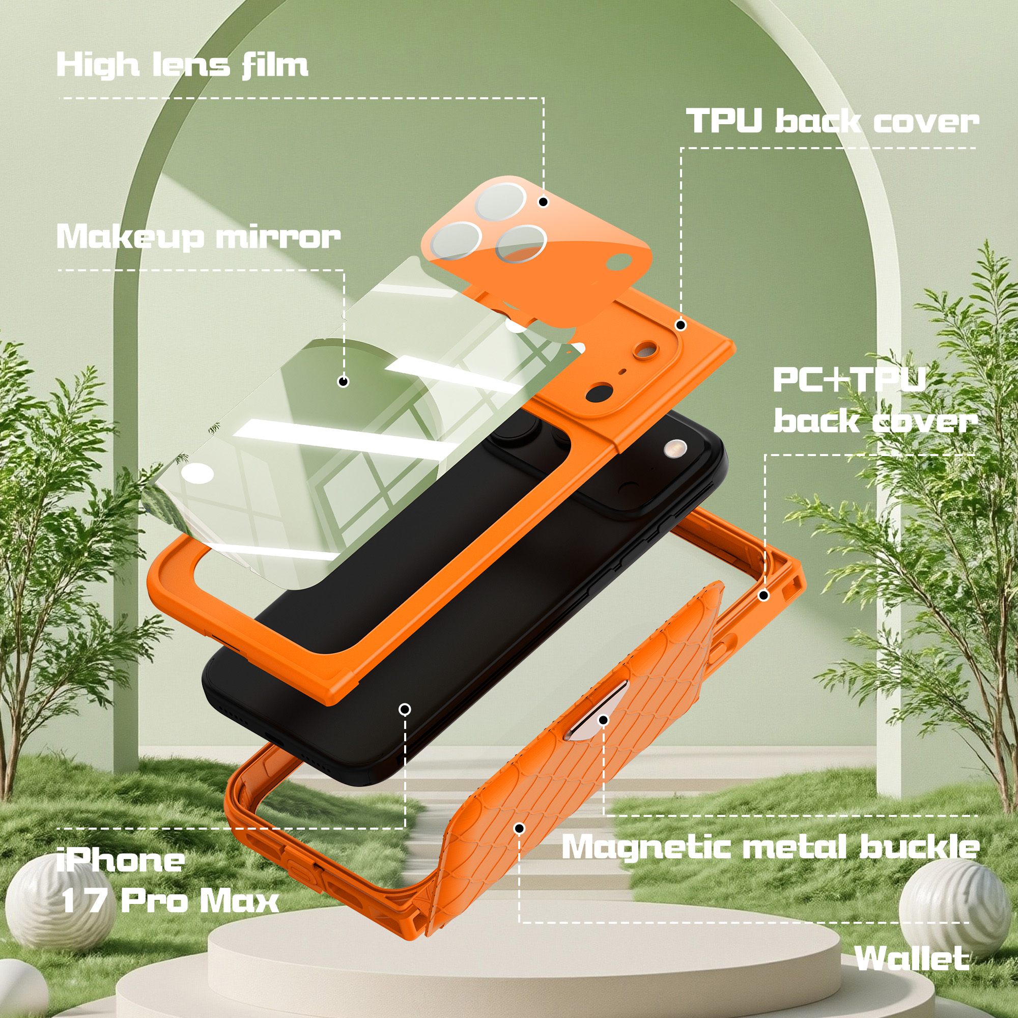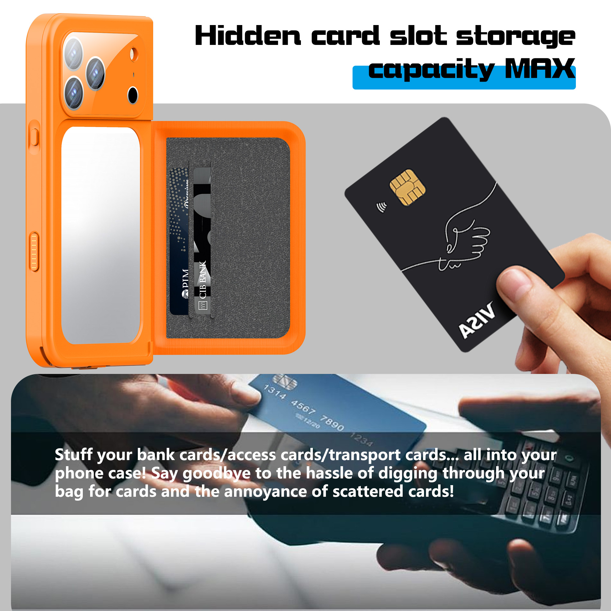 2025 New Waterproof Protect Case with Mirror Card Wallet function for iPhone 17Pro max 17Pro 17Air 17