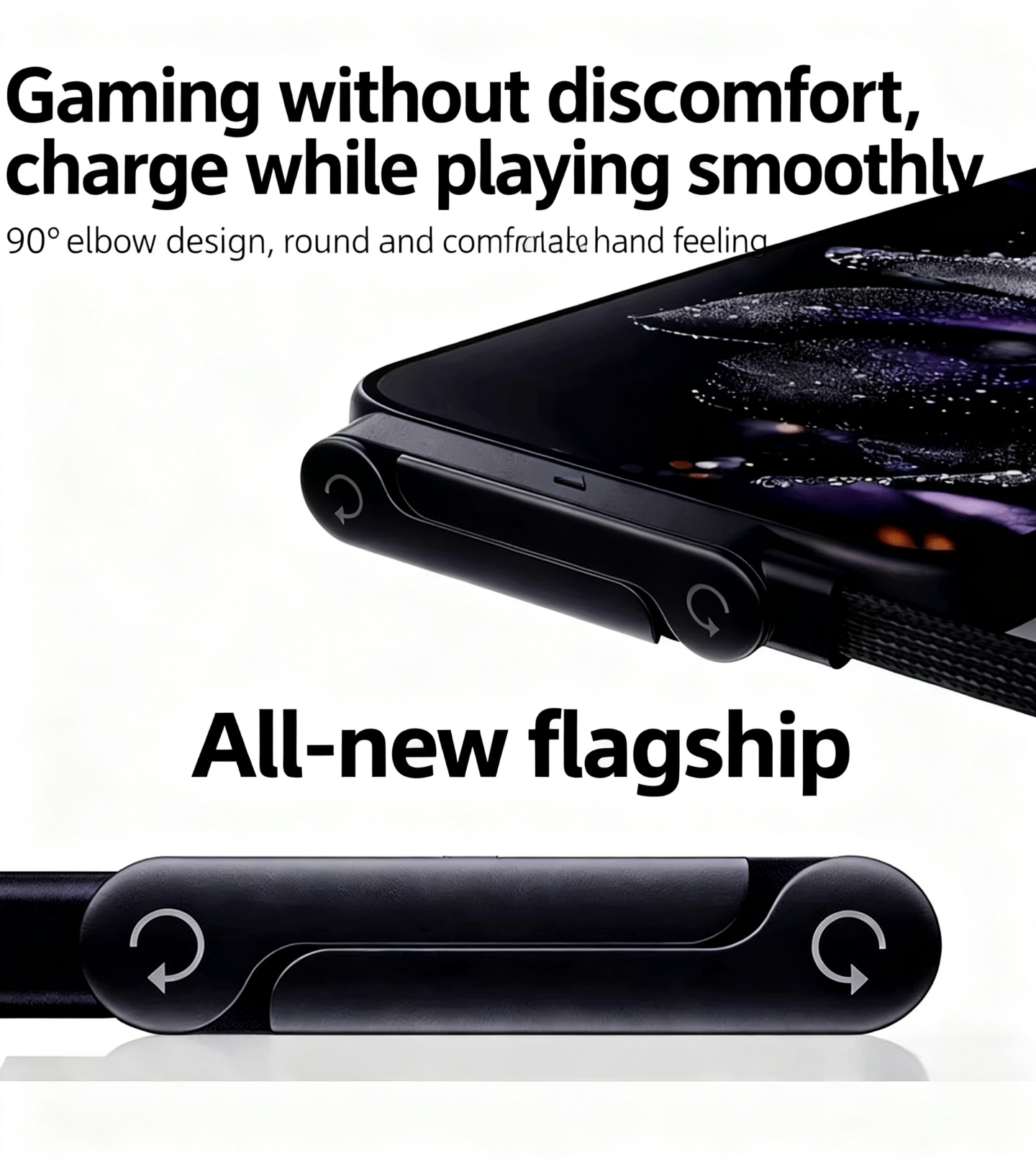 · 90° angled plug allows comfortable grip while charging and using your device