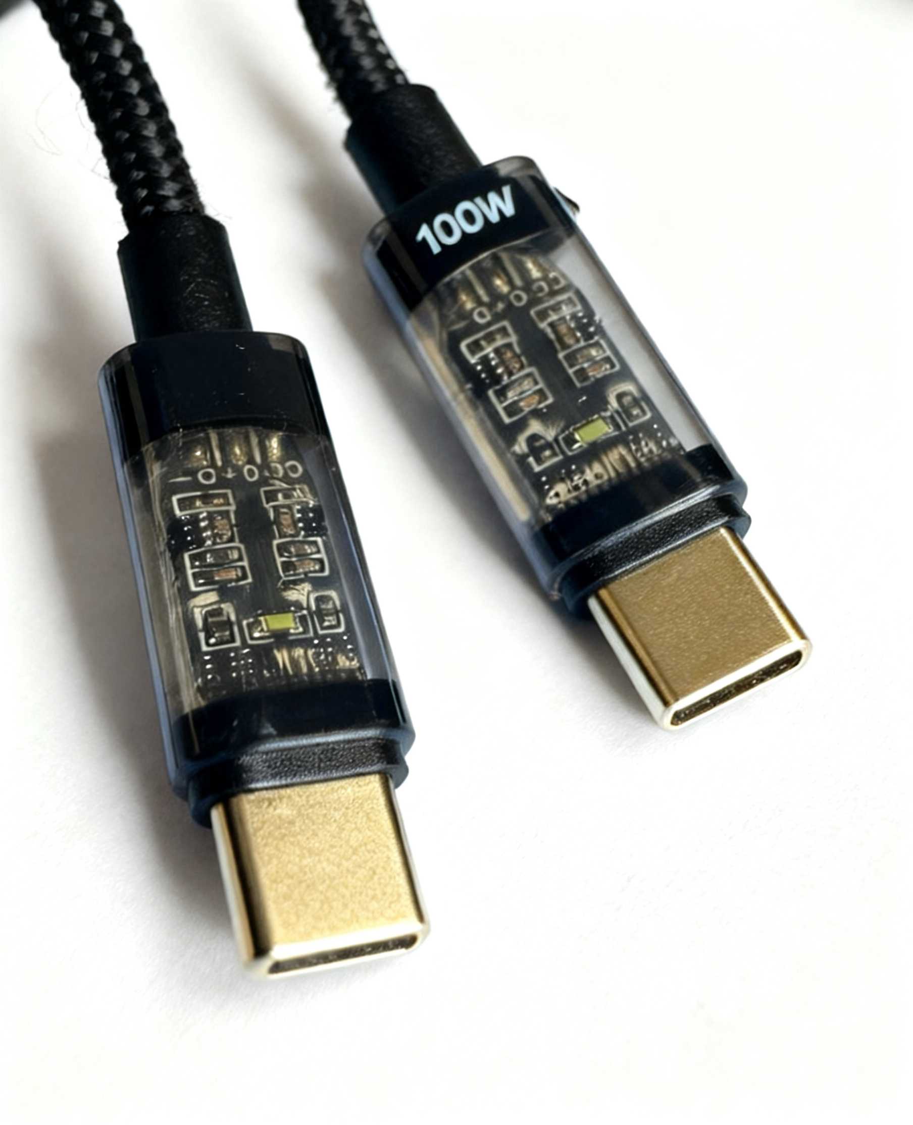 100W 27W New Transparency Shell Quality PD Fast Charging Cable Build LED Indicator for Smart Charging 480Mbps High-Speed Transmission(1.2M/2M)