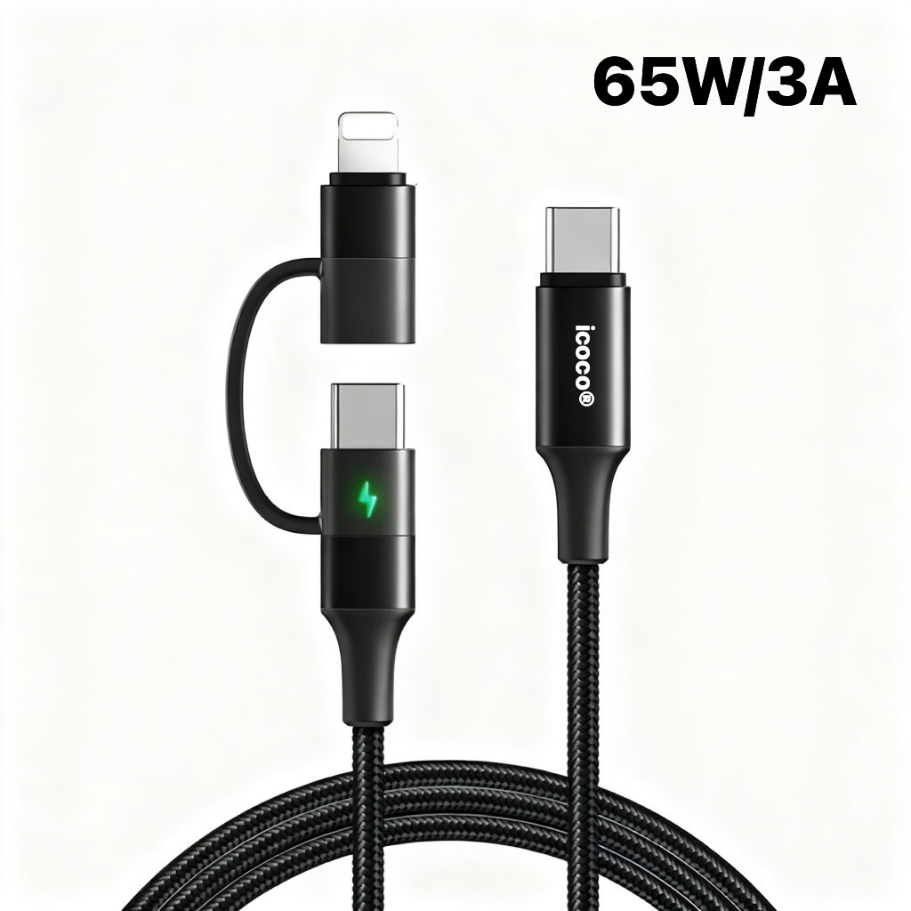 3-in-1 Quality 65W 3A Fast Charging Visible Cable Compatible for Smart Phone Tablets Laptops with 480Mbps High-Speed Transmission(1.2M)